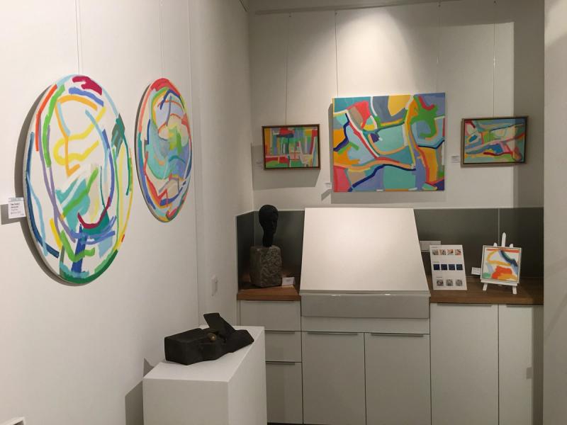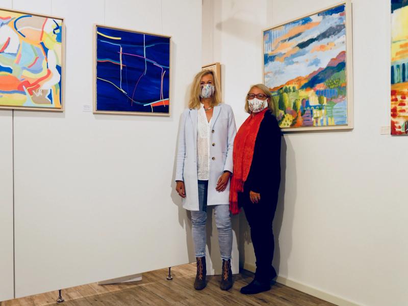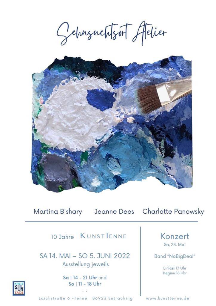 Seit 12 Jahren sind die Künstlerinnen Martina B‘shary und Jeanne Dees über die Kunst verbunden. Seit 8 Jahren arbeiten sie zusammen in ihrem gemeinsamen Atelier in der Nähe von Landsberg. Die Leidenschaft für Farbe ist den beiden, die im Studiengang Farbmalerei bei Jerry Zeniuk und Ingrid Floss studiert haben, gemeinsam. Beide bevorzugen Ölfarbe als Medium. Jeanne Dees malt abstrakte Bilder, in denen sie den Beziehungen zwischen zeichnerischen Linien und malerischen Flächen nachgeht. Martina B‘shary malt vorwiegend abstrahierte Landschaften und Pflanzenformen. Beide Künstlerinnen gehen in ihrer Malerei den Beziehungen der Farben und den daraus entstandenen Räumen nach. Ihre Bilder sind durch helle Farben und ihre positive, freundliche Ausstrahlung geprägt. Ein positives „Ja“ zum Leben , ausgedrückt in einer farbigen, expressiven Malweise, verbindet beide Künstlerinnen.